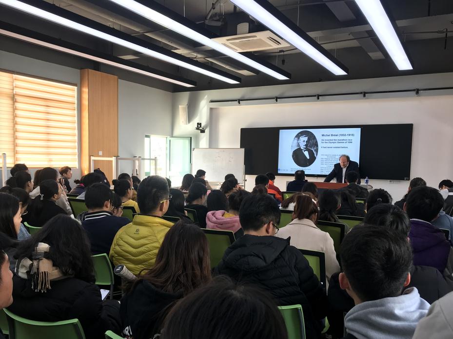 贝林格教授的著作《运动通史—从古希腊罗马到21世纪》一书被翻译为中文,深受广大体育学师生的喜爱。本次讲座,贝林格教授也以该书的逻辑顺序为广大师生进行体育史方面的讲座。讲座共分为两个部分,第一部分由贝林格教授通过PPT展示和生动形象的语言为师生们讲述从公元前2000年体育诞生一直到近代奥林匹克运动复兴之前的历史演变。第二部分则是休闲公司师生根据贝林格教授讲述的内容提出相应问题进行讨论。