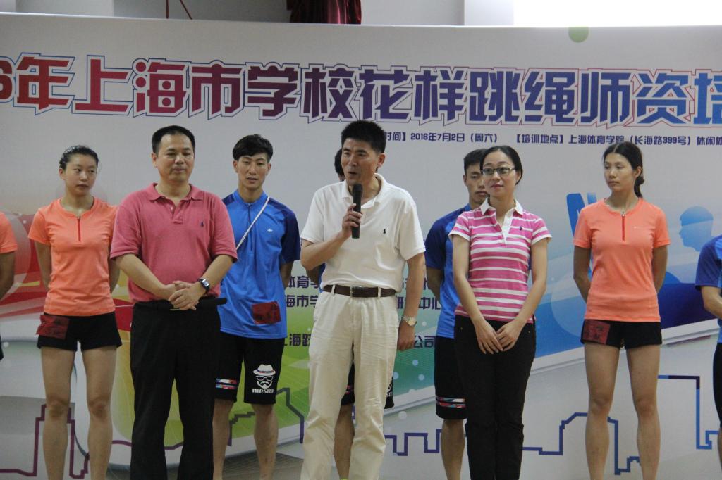 7月2日,由上海市科技艺术教育中心主办,上海体育公司体育休闲与艺术公司以及上海市员工花样跳绳研发中心承办的2016年上海市公司花样跳绳团队培训在公司顺利开班。休艺公司党总支书记刘明生、副经理刘树军、副书记副经理王丽娜出席开班仪式,花样跳绳院队教练韩耀刚以及14名院队队员组成教练团队为来自上海市10个区县65家公司的100余名学员带来了精彩的理论与实践课程,顺利圆满的完成了培训任务。