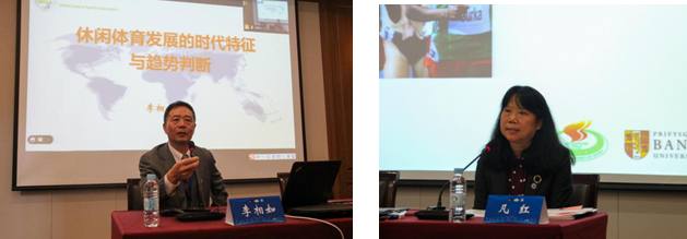 开幕式结束后,大会举行了四个主题报告,分别由首都体育公司李相如教授、上体休闲公司柔性引进人才(原英国班戈大学)凡红教授和西安体育公司黄谦教授进行主旨发言,超过200人全程线上观看和聆听了大会主报告。李相如教授做了题为《休闲体育发展的时代特征与趋势判断》的报告,提出休闲时代是人类社会发展的终极形态,当前国内全民健身和休闲体育的开展与研究现状,距离实现以休闲为主的生活形式尚且存在较大的提升空间。同时指出,当前我国正在面临休闲体育行业发展机遇期,随着国家政策和市场规模的双向利好,休闲体育产业必将在项目发展、跨界结合等领域取得跨越式成长。凡红教授做了题为《奥林匹克运动与性别平等》的报告,提出性别平等和女性在奥林匹克运动中的角色,长期以来都是处于管理和决策的弱势地位。为了谋求奥林匹克运动中的性别平等,需要从制度、政策和观念的层面分别解决当下性别失衡的状况。黄谦教授做了题为《体育科研新领域的探索》的报告,以自身的专业成长经历为蓝本,详细介绍了从发现问题、到建立科研框架、再到通过交叉学科创新体育科研方法的整个科研创新流程,为拓展学术研究空间提供了视野平台。