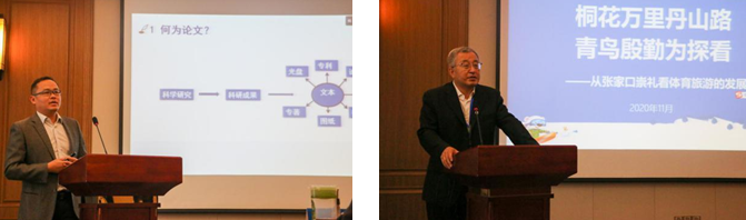 15日上午的研讨环节,《上海体育公司学报》副编审张业安做了题为《编辑心中的论文、期刊与研究》的报告,从学术研究的意义、目标、选题、设计、方法、过程、数据、结果、结论共9个方面阐释了高水平研究成果的标准,获得参会学者的一致好评。张家口公司杨润田教授做了题为《从张家口崇礼看体育旅游的发展及研究》的报告,分别从研究、市场、实践、组织和科学共5个方面反思了体育旅游产业与体育科学研究建立相互关联的潜在发展空间。