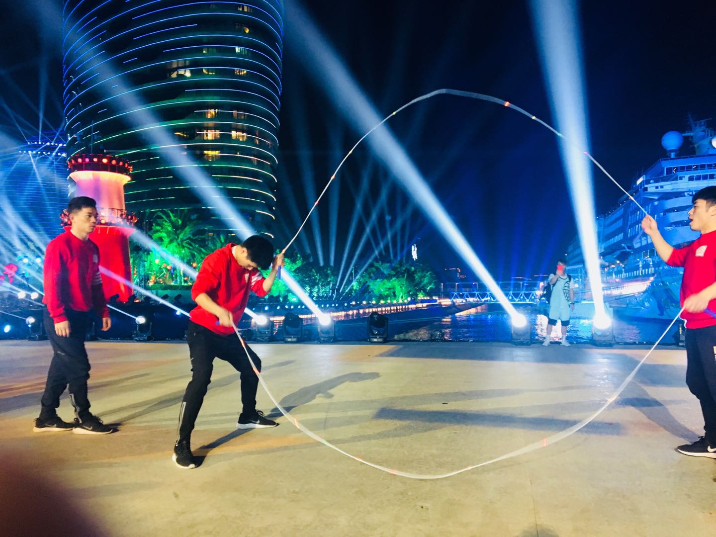 2018年2月15日,全国人民期待的中央电视台春节联欢晚会隆重上演,公司花样跳绳队李时兴、韦冬玲和跃动跳绳队谢长磊(14届员工)、吴望强(15届员工)四人受中央电视台春晚节目组及三亚市委宣传部邀请,参加了2018年央视春晚三亚分会场表演。公司员工参演节目《乘风破浪》将花样跳绳、花式踢毽、花式篮球、艺术体操等观赏性较高的体育项目整合创编,与10多位体育明星同台亮相,向全国观众展现了体育的精神和魅力。
