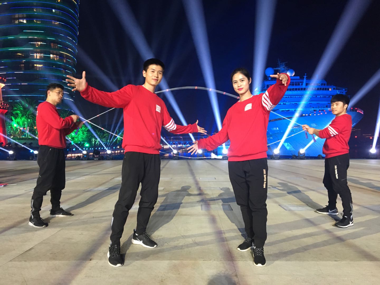 在公司及休艺公司领导的关心和支持下,员工们放弃寒假休息,提前半个月来到三亚彩排。每天早上进入排练场,凌晨1-2点排练结束,在半个多月的排练中队员们全力投入,一遍又一遍的听音乐踩点积极参与到排练中,充分展示了上体学子顽强拼搏的精神和吃苦耐劳的品质,得到了导演组的一致好评。