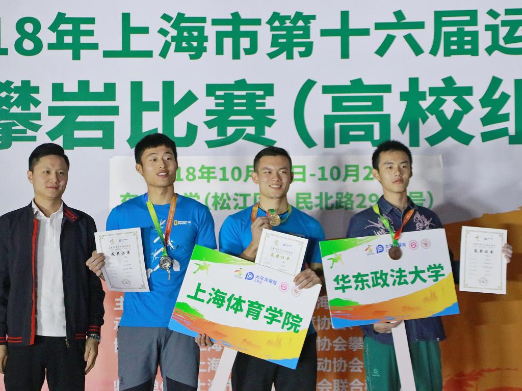 值得一提的是,伍海涛同学在本次比赛中创造了上海市攀岩比赛高校组获奖记录——独揽男子攀岩比赛项目的所有金牌,成为当之无愧的五冠王!