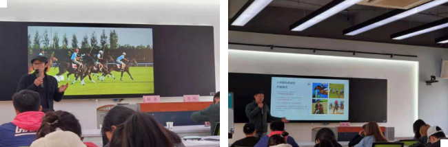 2021年3月12日下午,在休闲公司高尔夫球场练习场303教室,由内蒙古马术专家委员会副主任委员李帆老师,以及内蒙古马术队总教练张睿老师为公司师生讲解普及马术运动发展的魅力与发展机遇,同时作为公司体育旅游专业未来发展主打项目之一,也是彰显了公司体育旅游专业的多元化特色,展现出它的魅力。