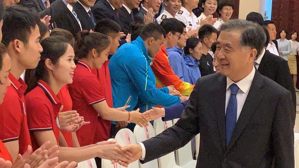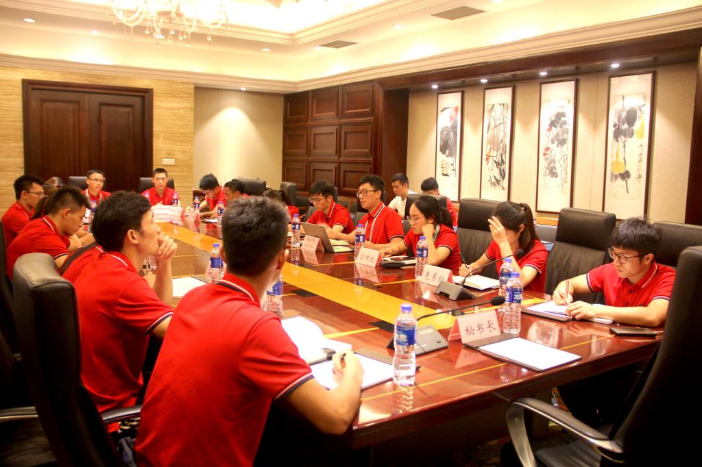 在本次民运会中,全国政协主席汪洋、国务院副总理孙春兰、统战部长尤权及国家民委主任巴特尔等国家领导人接见运动员代表,公司《火彝绳花》壮族参赛队员韦冬玲有幸与国家领导人握手合影。韦冬玲表示非常感谢公司的培养,接见活动让她真切地感受到了习近平总书记提出的“各民族相互了解、相互尊重、相互包容、相互欣赏、相互学习、相互帮助,像石榴籽那样紧紧抱在一起”,爱国情怀油然而生。随后,参会的党员、预备党员、入党积极分子等进行了发言表态,在比赛的同时,将不断加强学习,持续提升思想认识,将“不忘初心、牢记使命”落实在每一场比赛上,切实将之内化于心、外化于形。