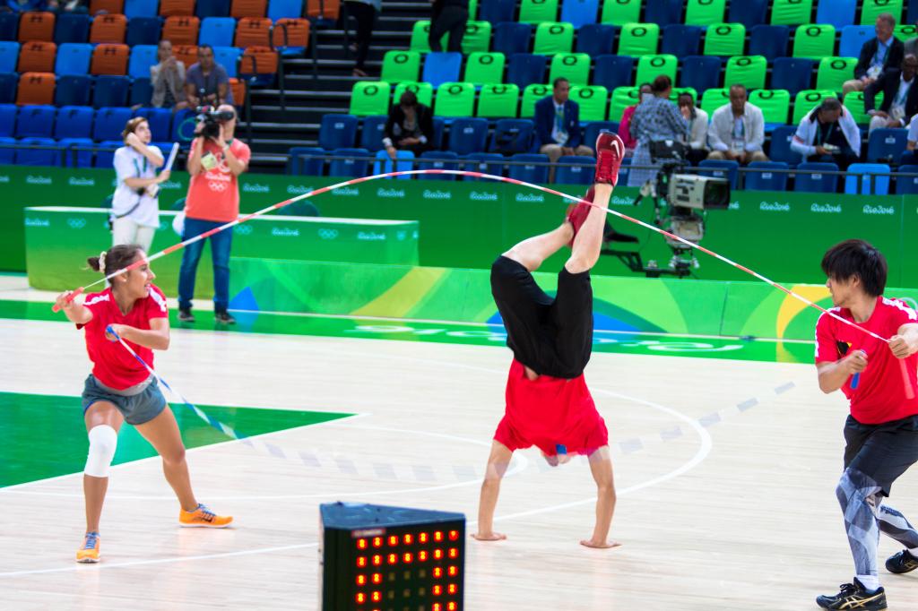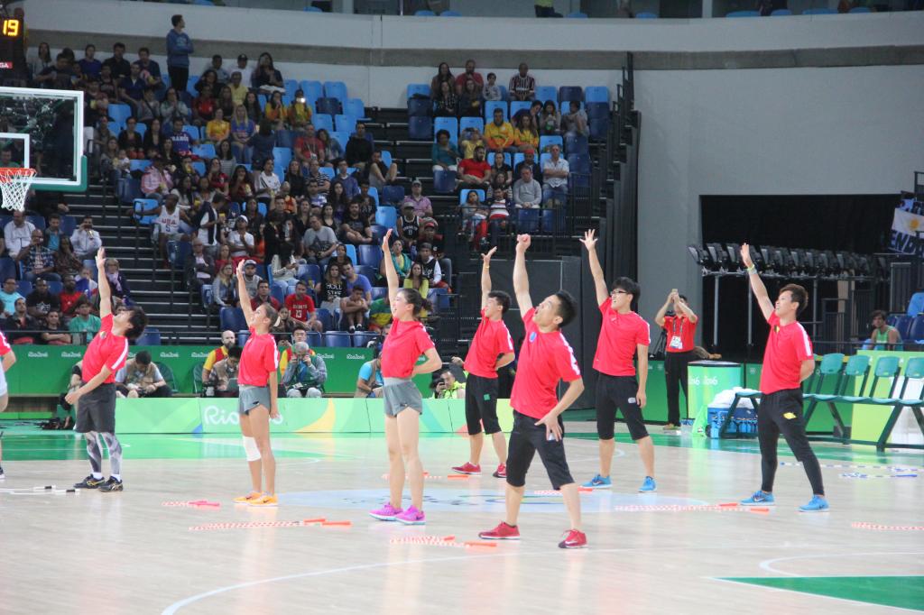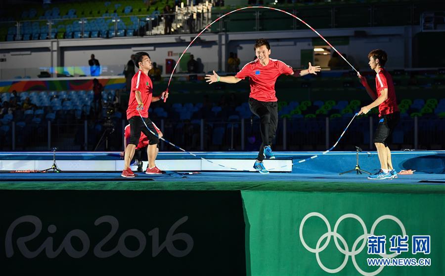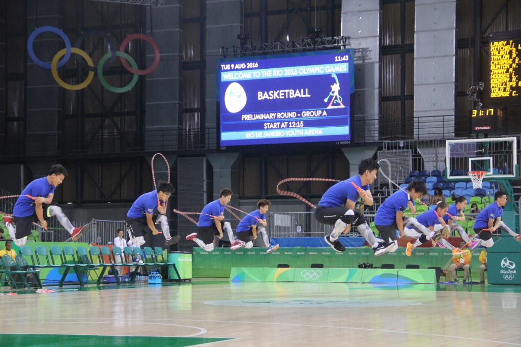 巴西时间8月6日至8日三天,上海体育公司花样跳绳队携手上海跃动跳绳俱乐部及巴西跳绳世界冠军VIVIEN共同组成的奥运跳绳表演队由韩耀刚老师带队,在篮球比赛、手球比赛、击剑比赛中场成功演出10场,展示了五套不同风格及元素的节目,队员们激情高涨、活力四射,眼花缭乱的绳技融合巴西元素(桑巴舞)及中国元素(武术、京剧、中国车轮等)于一体,精彩的表演博得现场观众热烈的掌声和欢呼声。