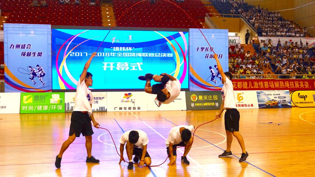 2018年7月10日至15日,由国家体育总局社会体育指导中心、中国老员工体育协会、中国中员工体育协会主办的全国跳绳联赛总决赛在广州市花都体育馆成功举办,共有来自全国20个省、市、自治区的82支代表队842名运动员参赛,其中有北京体育大学、广州体育公司、福州大学、大连大学、山东师范大学、西南大学、成都大学、贵州师范公司等17所高校队伍参赛。上海体育公司花样跳绳队12名队员在领队刘树军和教练韩耀刚的带领下再创佳绩,在速度赛5个小项(30秒单摇、3分钟单摇、30秒交互、4x45秒交互、4x30秒单摇接力)、花样赛4个小项(个人花样、同步花样、车轮花样、交互花样)和集体自编赛共计三个大项10个小项中均斩获金牌。