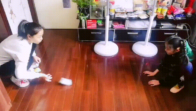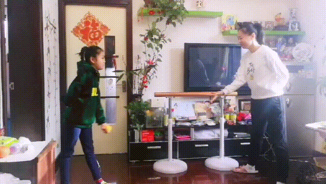 规则:家长和孩子面对面两米蹲好,一方左右平行滑步,一方随机地滚发球,滑步方要快速反应接住滚过来的球,连续接住十个球算挑战成功,中间有没接住,重新开始;