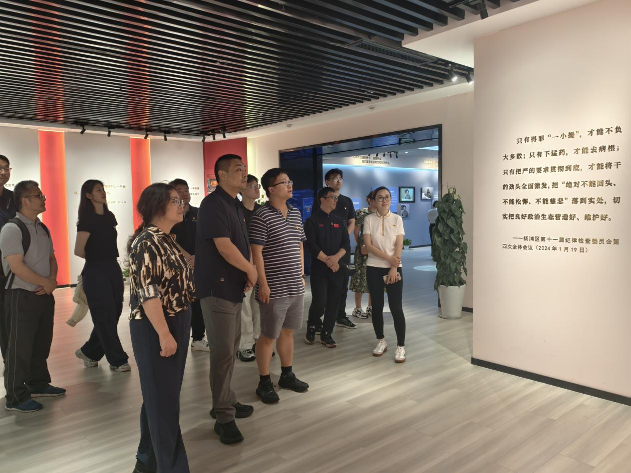 在杨浦区廉政教育基地,全体人员认真参观廉政教育图文资料展并观看了廉政宣传教育片。通过典型案例的展示,直观地呈现了腐败行为的严重危害以及对党和国家事业造成的巨大损失,深刻感悟中国共产党勇于自我革命的鲜明品格、全面从严治党的深谋远虑和惩治腐败的坚定决心,敲响廉洁自律警钟,切实增强知敬畏、存戒惧、守底线的思想自觉。