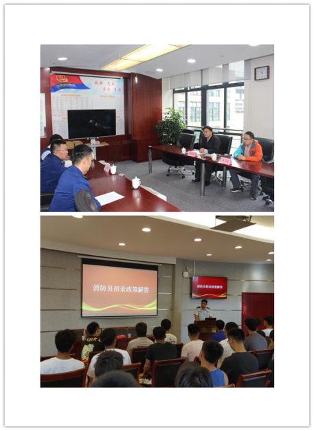 体训公司党委邀请了黄浦区消防救援支队党委委员、政治部主任刘民楼、队务处副处长王宾、纪检督察处副处长周励来校共同签订共建理想信念教育基地与就业实习基地等协议,并面向毕业年级同学开展宣讲报考流程讲解工作;邀请了杨浦区消防救援支队党委委员、政治部主任吴悦、队务科副科长沙懿君开展线上招录政策宣讲与解读;组织毕业班员工与特勤、闵行、崇明、杨浦、长宁、浦东等区消防救援支队的青年干部开展篮球、足球、拔河等友谊赛,实地进行朋辈教育与招录政策答疑解惑,进一步拓展报考渠道和就业范围等。截止目前,2022届体教毕业生中共有9名同学通过严格的测试和选拔被录用为新消防员。