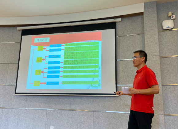 竞技运动与体能训练教学团队带头人王然教授介绍了第十一期体能训练队招募情况,并表达了对第十一期体能训练队全体队员的期望,勉励第十一期的新学员勤学专业,累积经验,在一学期的学习中能够有所收获、有所成长。