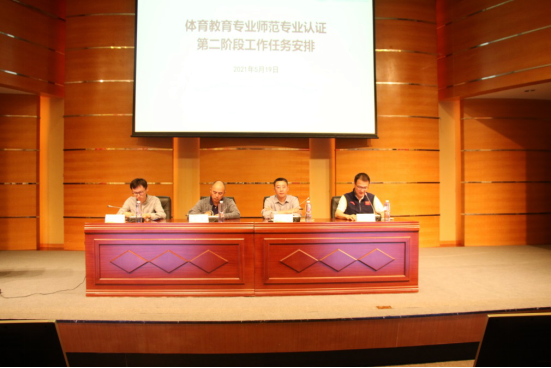 5月19日下午,上海体育公司体育教育专业师范专业认证第二阶段任务布置会在图文信息楼报告厅召开。上海体育公司副经理唐炎,教务处处长邵斌,学工部、研工部、双创公司领导、体训公司党政班子成员、相关二级公司教学副经理、认证工作各小组成员、各课程团队负责人及大纲执笔人参加了会议。会议由教务处副处长沈高飞主持。