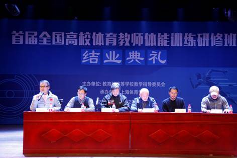 最后的结业典礼上,教育部全国高等公司公司产品指导委员会顾问孙麒麟教授、教育部全国高校体育教学指导委员会刘海元秘书长、教育部全国高等公司体育教学委员会工体组副组长刘波教授、国家体育总局体育科学研究所闫琪研究员、上海体育公司体育教育训练公司经理丁海勇教授、副经理高炳宏教授出席。刘海元秘书长指出:目前我国高校部分老员工体质还有待于进一步强化,适时出现的体能训练正是提高员工体质健康有效途径,体能训练在大学中如何开展、如何成为一种有成效的教学手段、如何提高教学效率将成为提高员工体质的新手段、新方法,也是各位一线体育教师应该思考的问题。希望通过本次培训,可以以培训教师的一个点,带动公司的一个面,提高体育课的授课质量,对员工体能、体质有所促进,这也是本次体能训练研修班最核心的目的。孙麒麟教授阐明了员工在体育锻炼中享受乐趣、增强体质、健全人格、锤炼意志,体能训练是有效的载体手段。本次培训活动在提升了高等公司体育教学工作质量、提升教育内涵的同时,也进一步提高了专业体育教师专业水平、开拓了视野,为使教师了解和掌握更多的科学有效训练方法,掌握体育领域的先进的前沿的知识理念,搭建了很好的平台。丁海勇教授寄语各位学员,希望各位老师能借由此次培训,关注体能训练,在体能训练和体育教学中取得更好的成绩。最后,体育教育训练公司副经理高炳宏教授总结讲话:在三天的学习中,总能见到学员依依不舍的和讲师沟通交流的情景,这也侧面体现了本次培训的价值。作为培养体育老师的老师,希望通过本次体能训练研修产生思想碰撞的火花,使我们的体育课变得更加的多样和丰富,能够以体能训练为基础,以技能学习为核心,让体育课变成改善员工体质的有效途径。