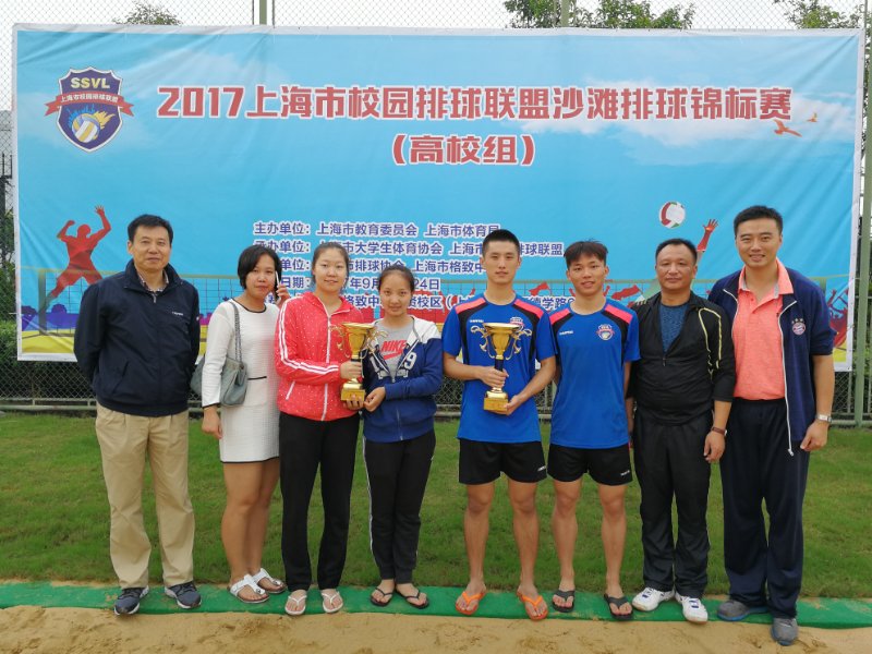 在建设“双一流”大学及迎接教育部评估的激励下,体训公司金赟等排球教学团队老师带领的上体沙排男队(由经济管理公司硕士研究生万洋、本科生卢文笛组成)、上体沙排女队(由运动科学公司本科生王轶凡、经济管理公司本科生黄榆涵组成),代表公司第一次参加了9月23~24日在格致中学(奉贤校区)举办的2017上海市校园排球联盟(高校组)的沙滩排球锦标赛,欣喜荣获佳绩。