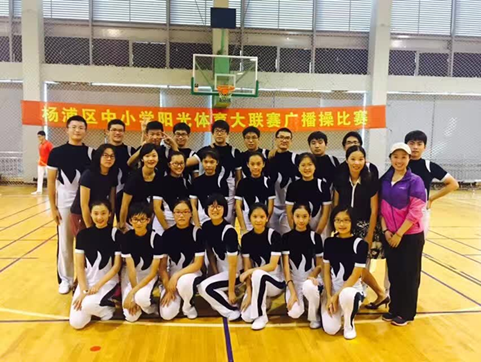 (高一新生在杨浦区广播体操比赛中荣获第一名的好成绩)