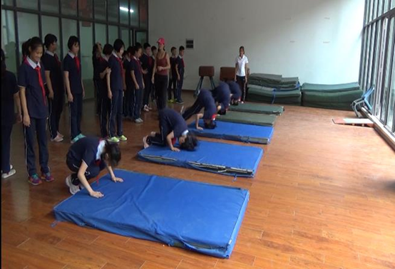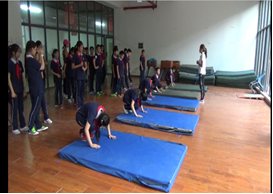 1、体操:在是东中学体操馆进行测试,测试内容主要是根据体育与健身六年级教材内容之前所学内容进行测试,主要包括体操前后滚翻,用时40分钟。