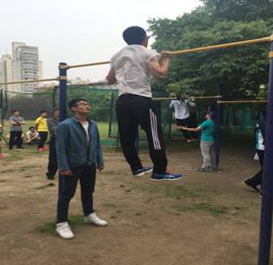 佐证、黄小轩、张燕和徐天晴在最后一个半天做的跳远项目和引体向上工作。