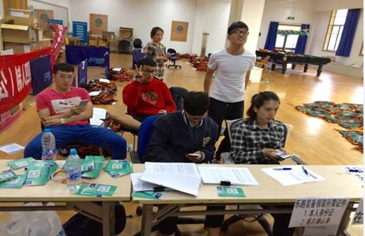 第三周实习队员在做复旦大学第23届乒乓球院系杯裁判工作
