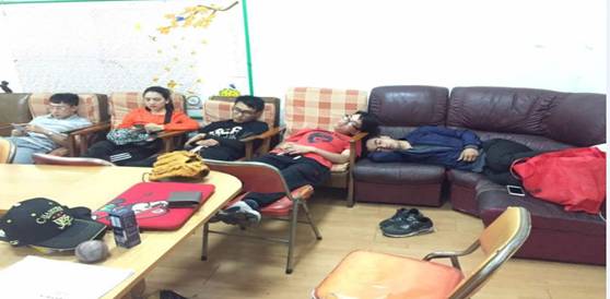 看,我们的小伙伴们在办公室学习和休息的状态。这学期的实习已经结束了,我们复旦实习分队在期待着下学期的教学工作。我们希望展现出我们最好的一面。