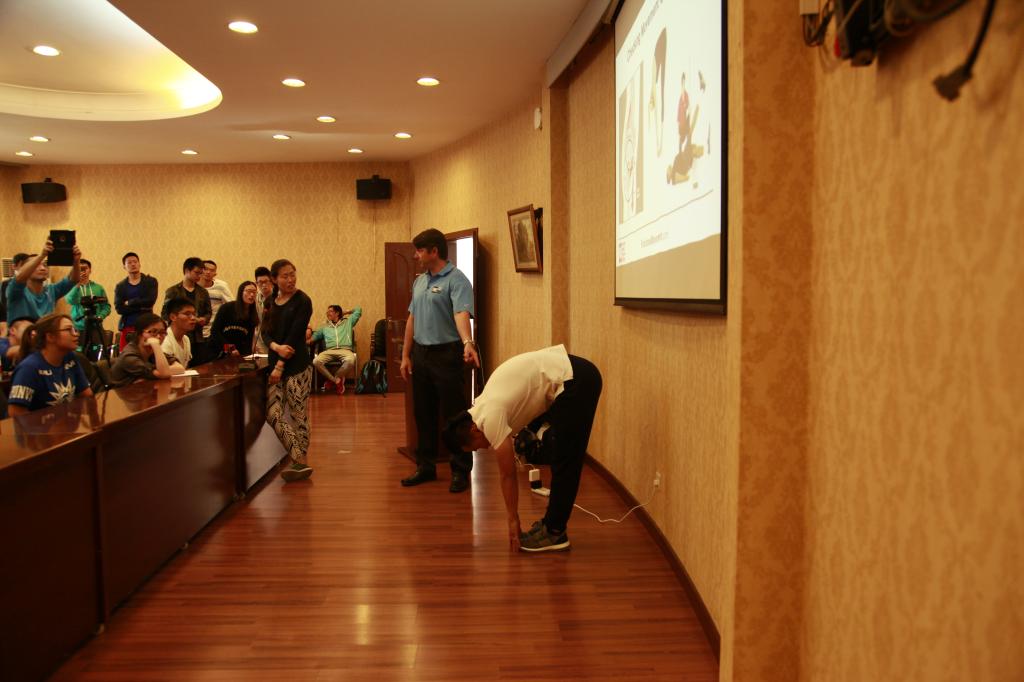 2016年5月18日上午9:00公司体育教育训练公司有幸邀请到功能动作系统(Functional Movement Systems,FMS)创始人之一,美国弗吉尼亚州丹维尔市功能动作系统大学(Functional Movement Systems University)董事长Lee Burton博士在体育教育训练公司1111会议室讲授FMS以及核心训练的课程。来自体育教育训练公司和运动科学公司的硕博研究生、本科生以及对此领域感兴趣的校外体能专业人士闻讯而来,认真学习FMS的筛查、检查和评估方式等,并与Lee Burton博士探讨FMS在不同情况下的应用,如一对一训练、团队训练和特殊人群的训练。本次课程全程由体能教练孙莉莉老师同声传译。