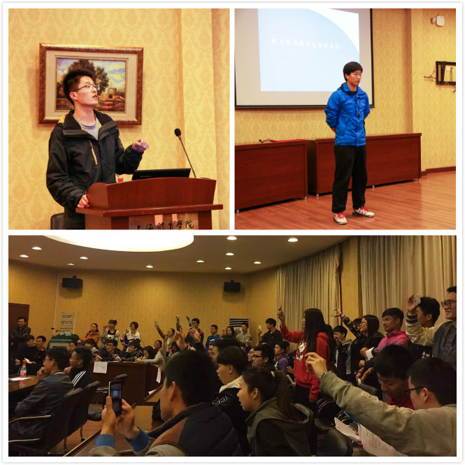 首先,袁大威同学讲述了关于教团队格证面试流程以及各环节注意事项。袁同学以亲身经验,将面试过程中的可能会遇到的情况向同学们讲解。接下来是展示环节,丁艳龙同学以足球教学为例的情景模拟,幽默风趣的语言及生动形象的演示让同学们仿如进入面试现场。本次活动还特邀武术公司优秀员工曾雷云为大家展示武术题目,同学们纷纷拿出手机记录,生怕漏掉一个动作,一个细节,并在展示结束后报以热烈的掌声。活动第三部分是体验试讲,同学们踊跃参与,先后上来了以排球、篮球、足球和武术为例的四个同学。三位考官分别对试讲者进行结构化提问,试讲以及最后的答辩。在点评环节同学们积极发表自己的观点,活动特邀的教资考分通过者唐灵芬同学做最终点评,并答疑解惑,同学们在阵阵笑声中对面试有了更多感性和理性的认识,受益匪浅。