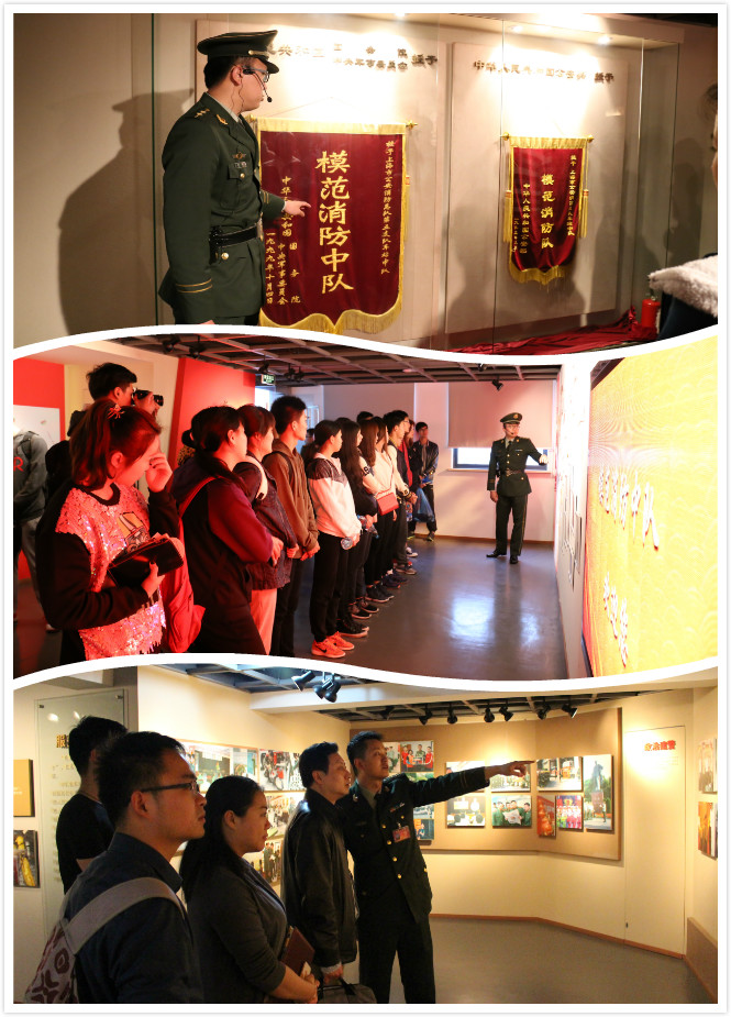 学员们在中队干部带领下参观了荣誉室,车站中队是国务院和中央军委联名授予的“模范消防中队”,自1924年建队以来担负着上海中心城区的战备执勤任务,经历了东航客机迫降、汶川抗震救灾、以及世博、亚信峰会等重大消防安保任务等等诸多重大任务的考验。在荣誉室一幅幅惊心动魄的照片与一面面锦旗面前,同学们仿佛感受着消防官兵用青春和生命捍卫平安生活的真是场景,同龄者的逆行壮举也时刻激励着同学们要坚定自己的理想信念,用汗水和努力去实现自己的青春梦想。
