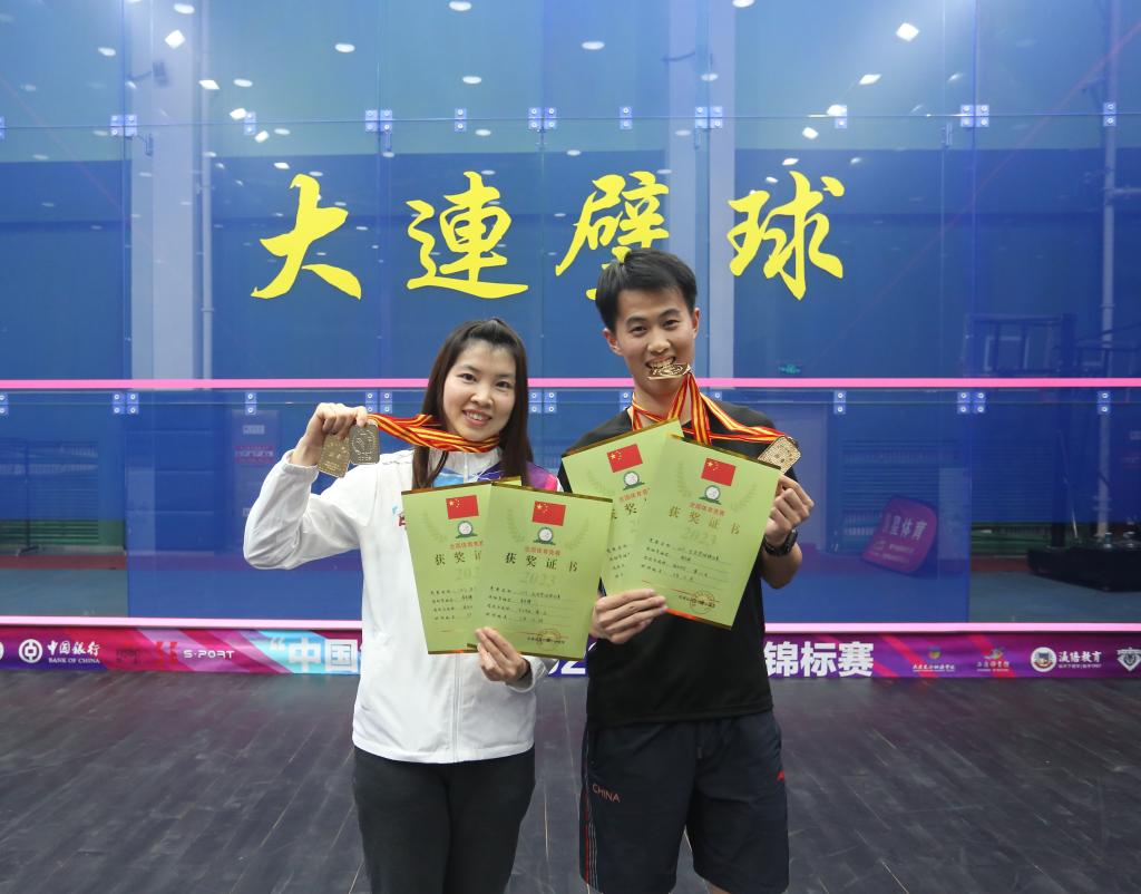 3月25日-26日,“中国银行杯”2023年全国壁球锦标赛在大连举行,永利yl23411邵春老师、蒋健老师、李东锦老师(教练员兼运动员)率队参加了本次赛事,并包揽了本次比赛的甲组单项和混双冠军。