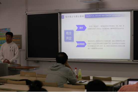 王文龙同学通过八个方面来分享自己的学术研究,首先为我们介绍了研究背景、研究意义、以及国内外研究现状。随后王文龙同学通过概念界定以及理论依据对我国警察徒手防控存在的问题进行了分析并且提出了研究假并通过表格清晰地为我们展现出研究结果。