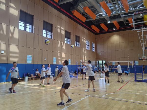 本次赛事由中国教育工会上海市委员会主办,复旦大学工会、上海市教工排球协会承担,来自市高校和区教育工会教职工运动员们齐聚球馆激烈比拼。公司教师在赛前积极备战,磨合比赛阵容,面对时间紧、场地稀缺的情况,积极寻求解决方案,平时利用教师中午的午休“抢”时间训练,且自制简易球网进行模拟对抗。