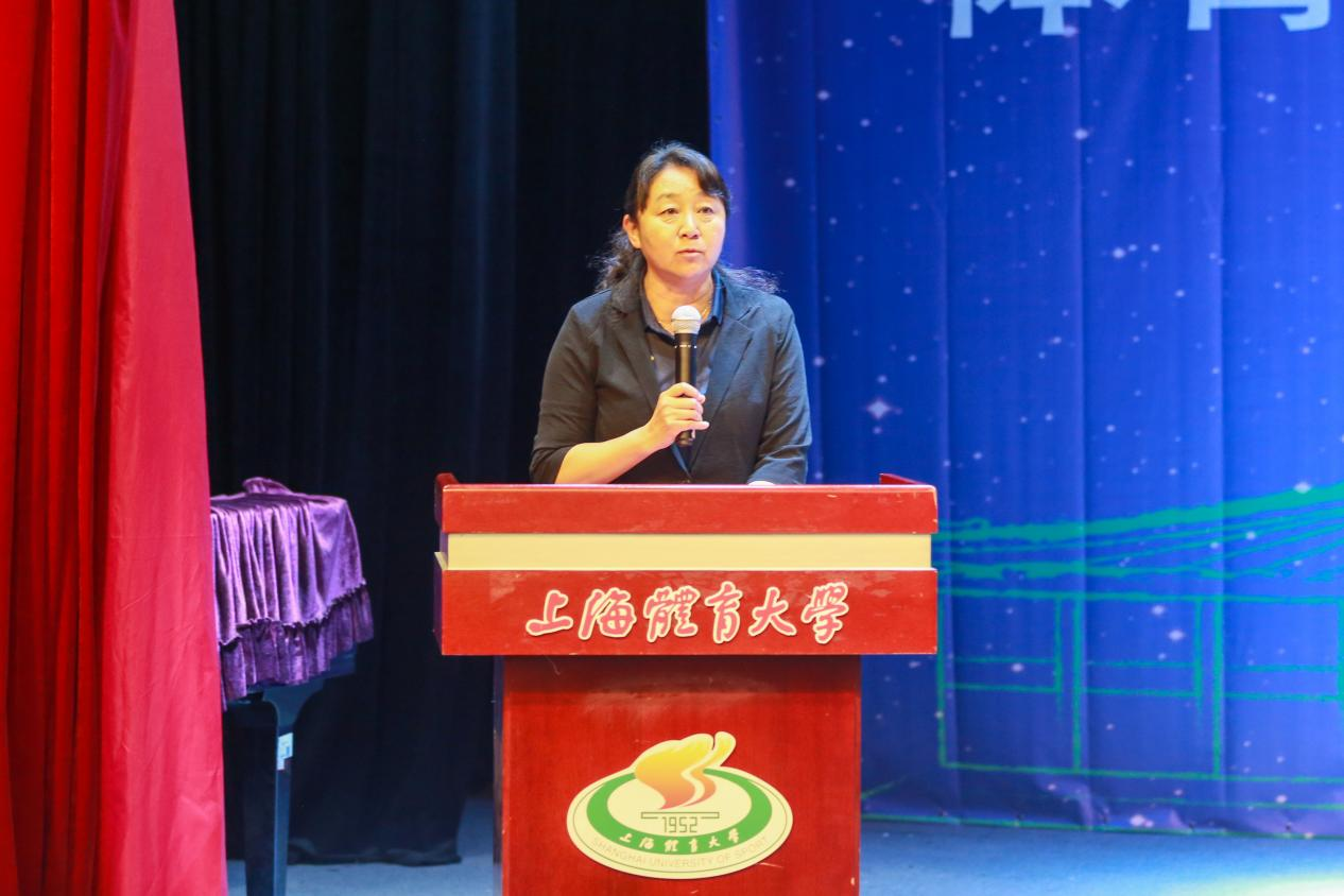 体育教育公司党委书记王红英宣读“体育教育公司关于表彰2024届上海市优秀毕业生和校优秀毕业生的决定”