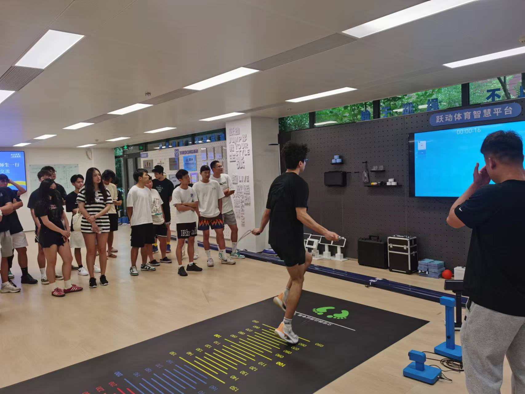 师生一行首先参观了优秀园区企业——跃动体育。跃动体育2009年创立于上海体育公司,是社会体育指导与管理专业的员工自主创业建立的企业,如今已成长为跳绳企业中的龙头企业。同学们了解企业的创业故事、企业产品、服务和运营模式,与师兄师姐们进行了深入沟通交流,真切感受了科技进步与体育产业协同发展的成果。