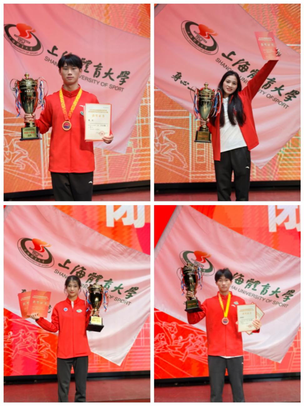 樊军荣获个人全能一等奖、教练技能(体操)二等奖、教学技能(体操)二等奖;韦春艳荣获教练技能(篮球)一等奖、教学技能(篮球)一等奖;房思怡荣获教练技能(足球)一等奖、教学技能(足球)三等奖;李世扬荣获个人全能三等奖,教练技能(排球)二等奖、教学技能(排球)二等奖。