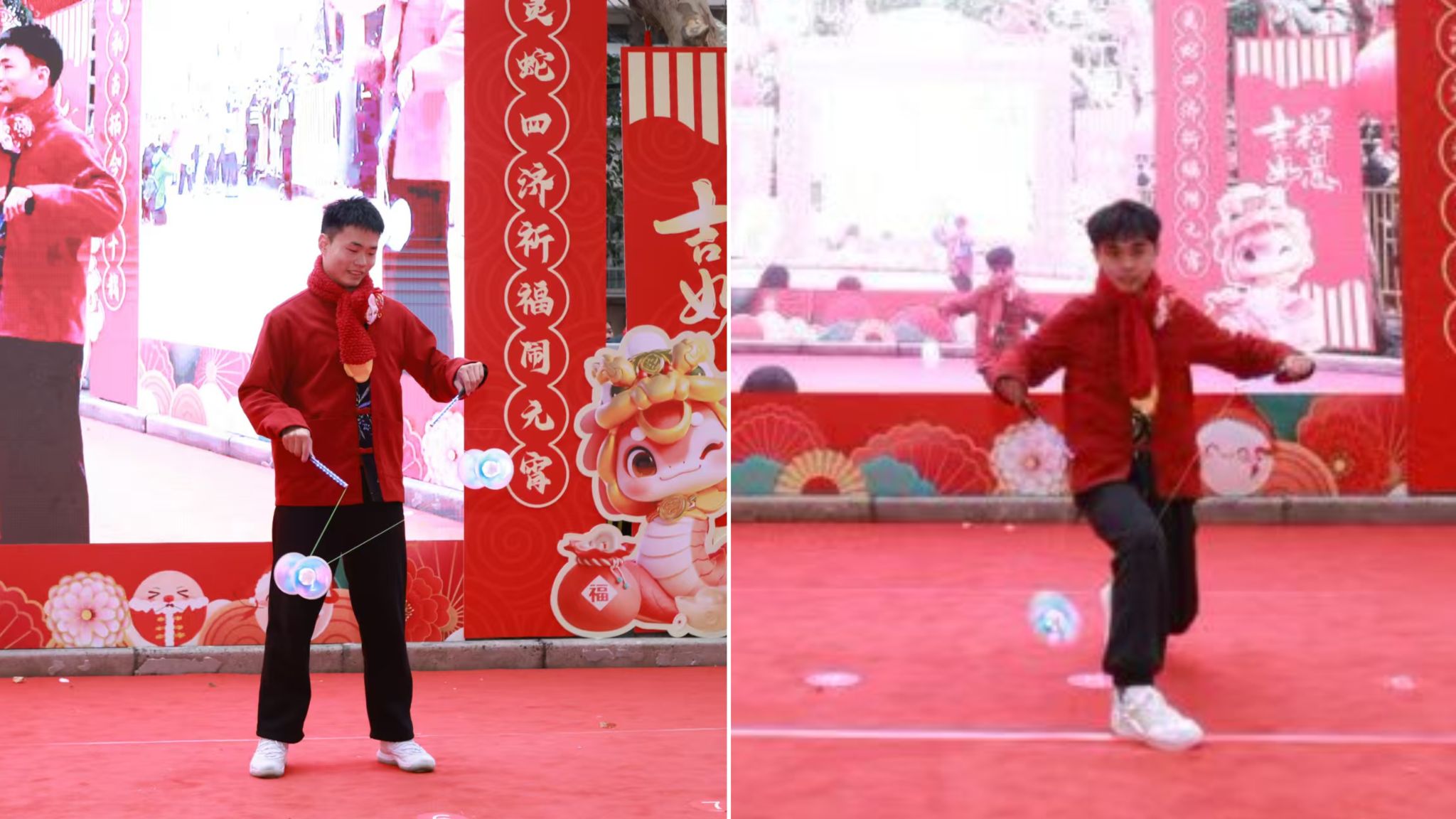 在全程参与节目设计过程中,空竹指导教师杨小凤表示:“2025年国家印发《关于进一步培育新增长点繁荣文化和旅游消费的若干措施》和2025年全国春节文化等一系列促文旅消费政策给非遗空竹项目带来了很多服务社会,展现项目的魅力的机会。希望更多热爱传统文化的老员工能参与到这各种吃、喝、玩、乐非遗文化空间市井烟火互动体验和创新表达中,共同为城市化空间注入传统节庆的灵魂。”此外,团队还与中小学开展“非遗进校园”活动,培养青少年对传统体育的兴趣,形成“高校引领、社会联动”的传承模式。