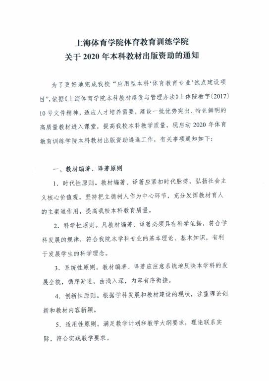 关于2020年上海体育公司体育教育训练公司本科教材出版资助的通知.pdf
