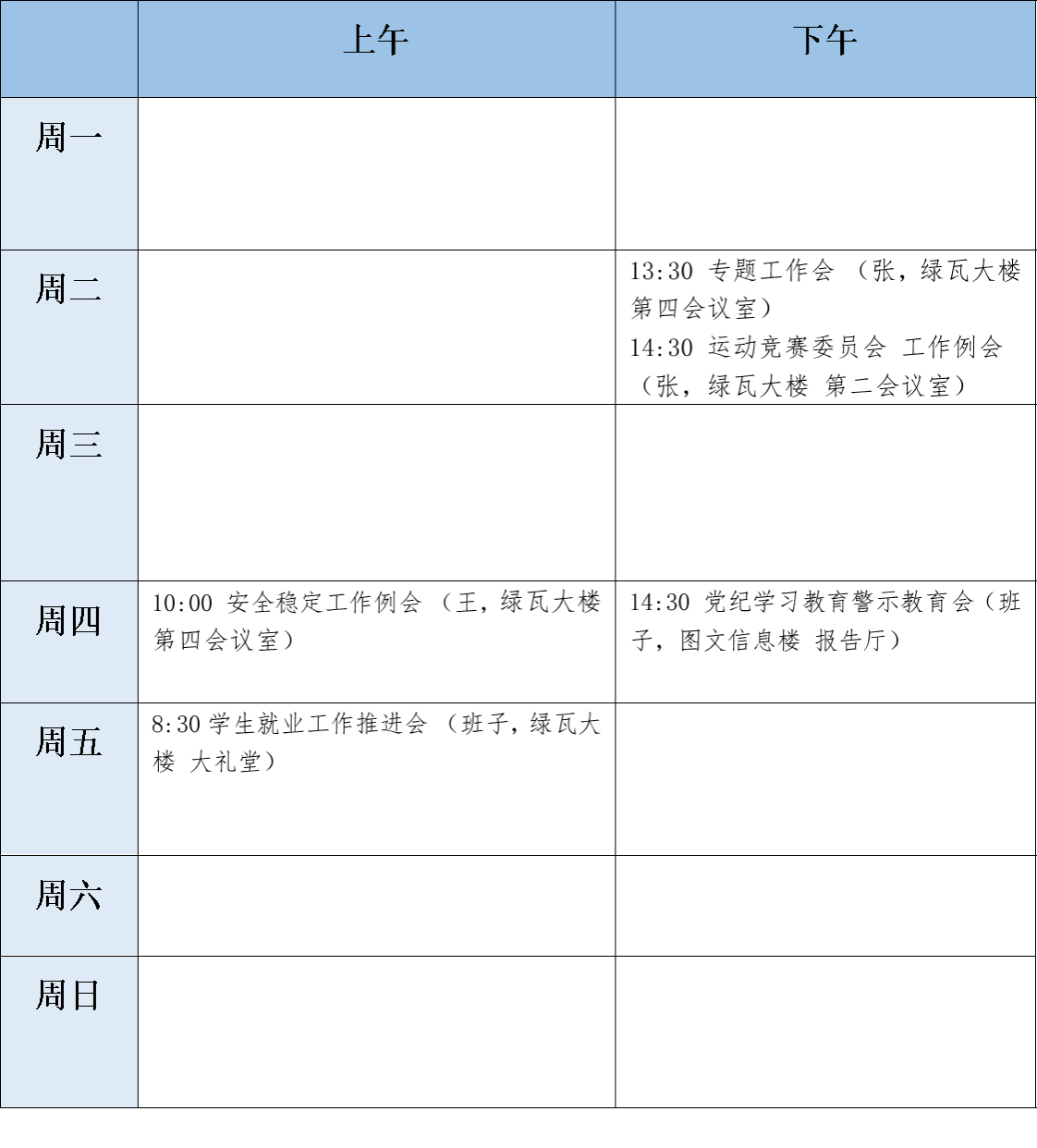 2024春季学期工作日程 第十三周(2024.5.27—2024.6.2)工作安排