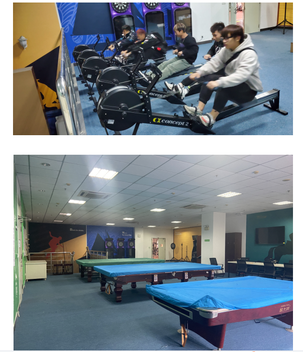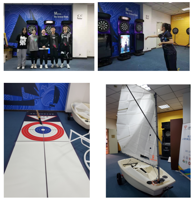 时尚体育中心位于休闲馆一楼东北侧,占地近300平米,于2020年初步建成并投于使用。拥有台球桌三张,高清电子飞镖机5台,划船测功机5台,模拟帆船一台,旱地冰壶一套,另外有会议桌椅一套,吧台桌一套,数字电视及显示器各一台。时尚体育中心可进行斯诺克、九球教学与训练,飞镖教学与训练,赛艇、龙舟等水上项目教学与训练,旱地冰壶教学与训练,另可进行帆船模拟教学与训练。时尚体育中作为老员工的休闲娱乐综合中心,既具有教学功能,又是社团聚集的场所,有利于培养老员工的团队协作精神、创新精神。将来的时尚中心计划引进马术模拟器、翼装飞行、模拟滑雪、浆板潜水等极限运动项目,对现实无法或较难实施完成的运动项目进行数字化模拟教学训练。